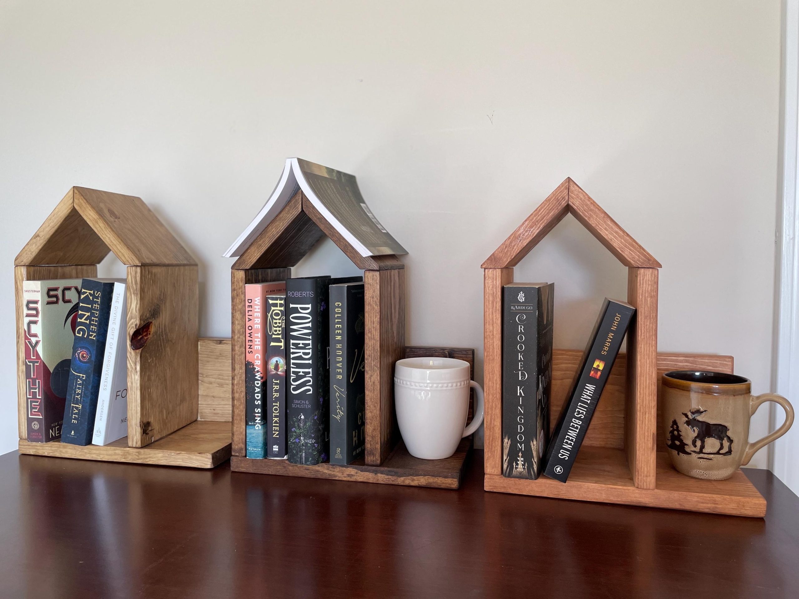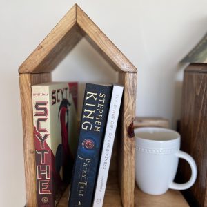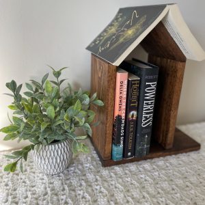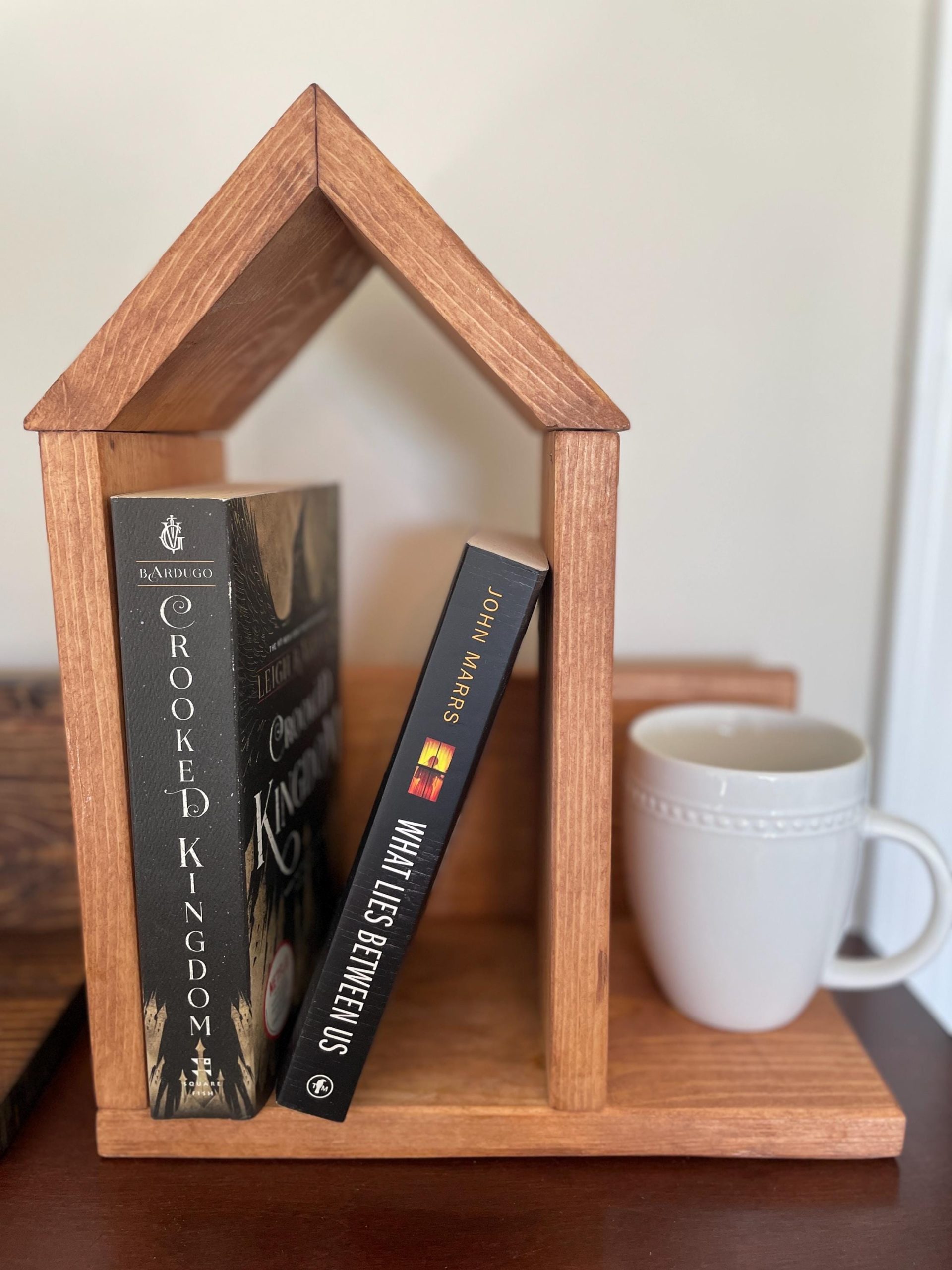 Book Lovers! This multi-purpose Book Nook fits perfectly on a nightstand or coffee stable. Great place to store your favorite books and hold your place!