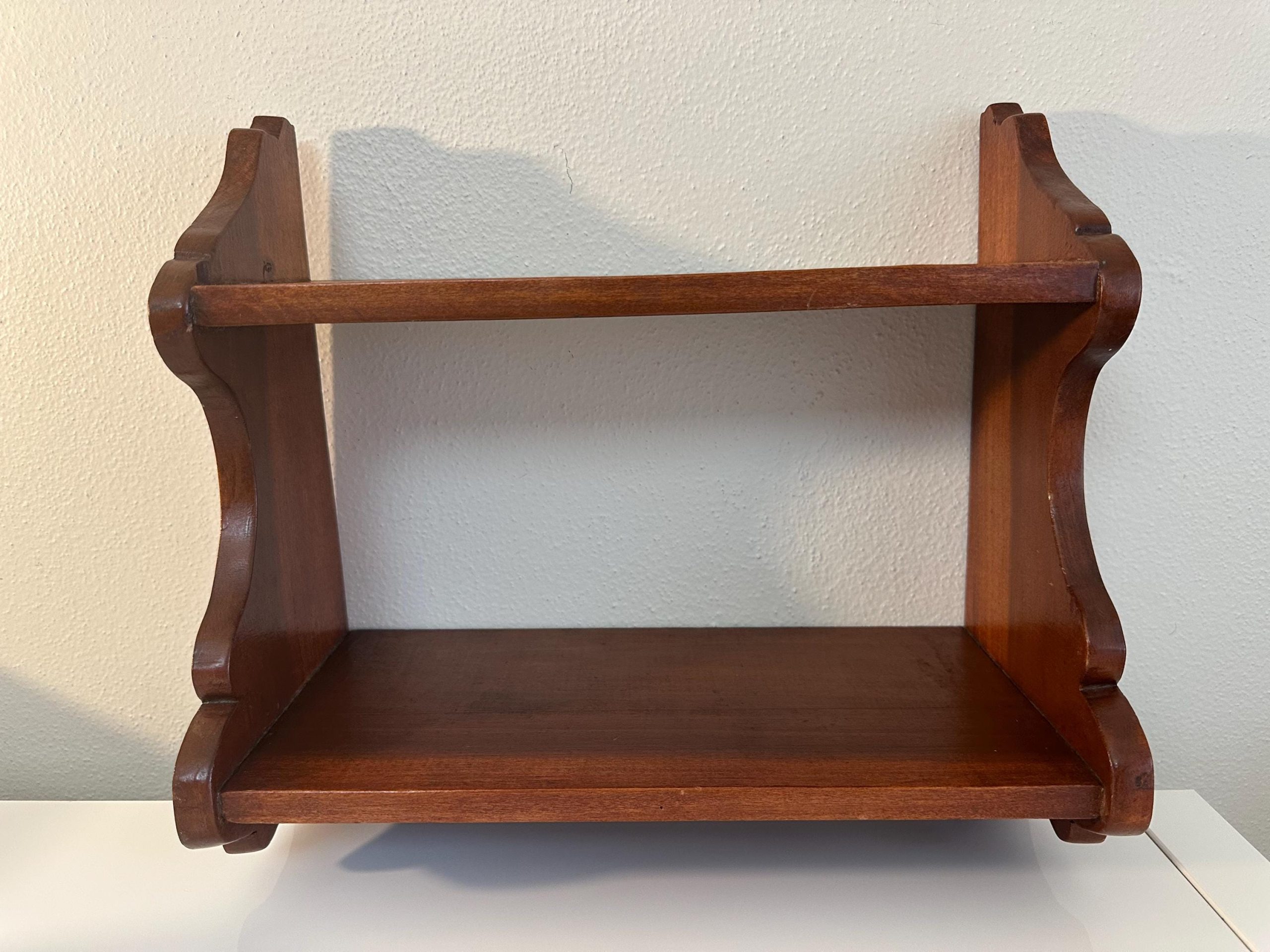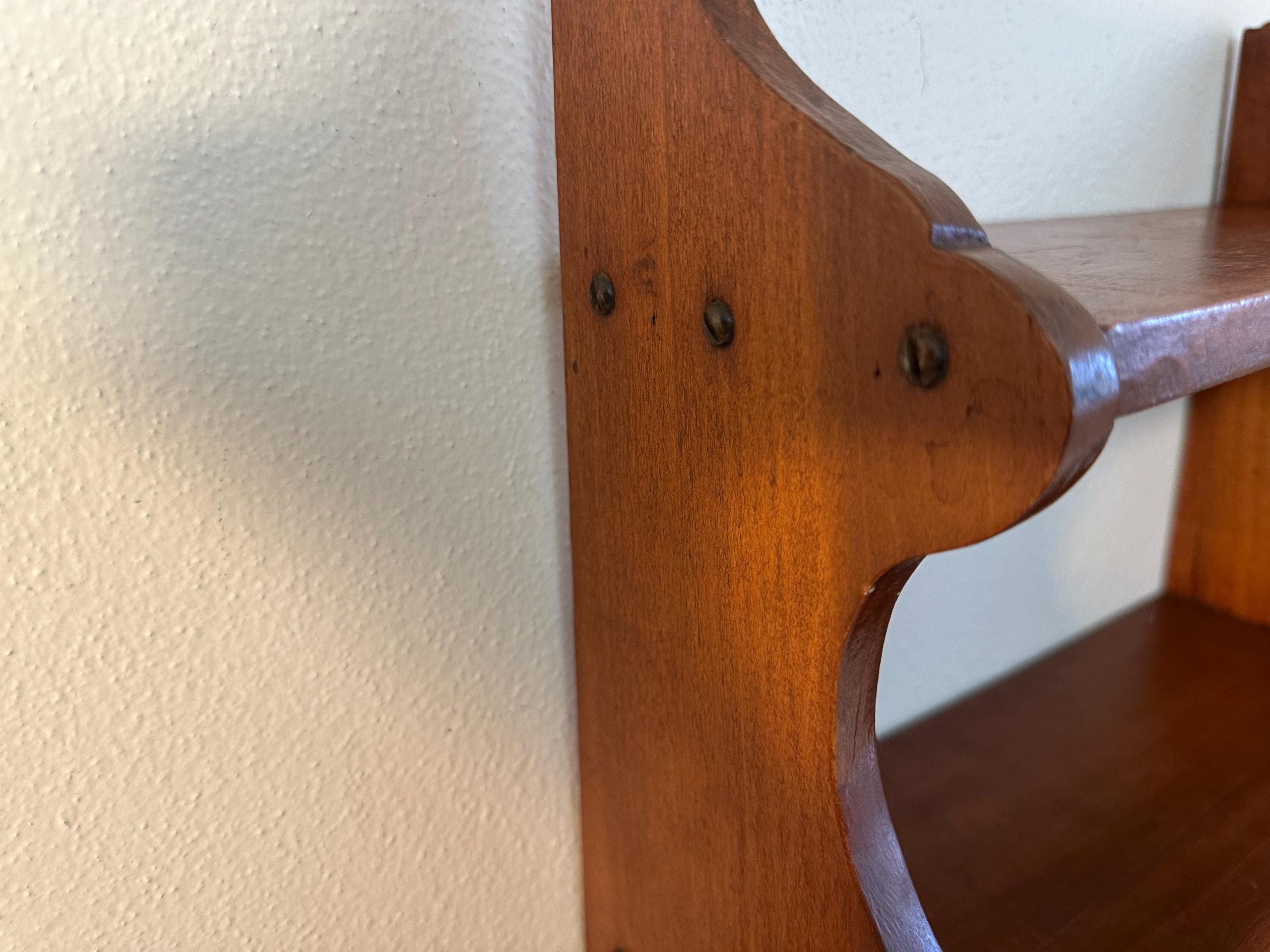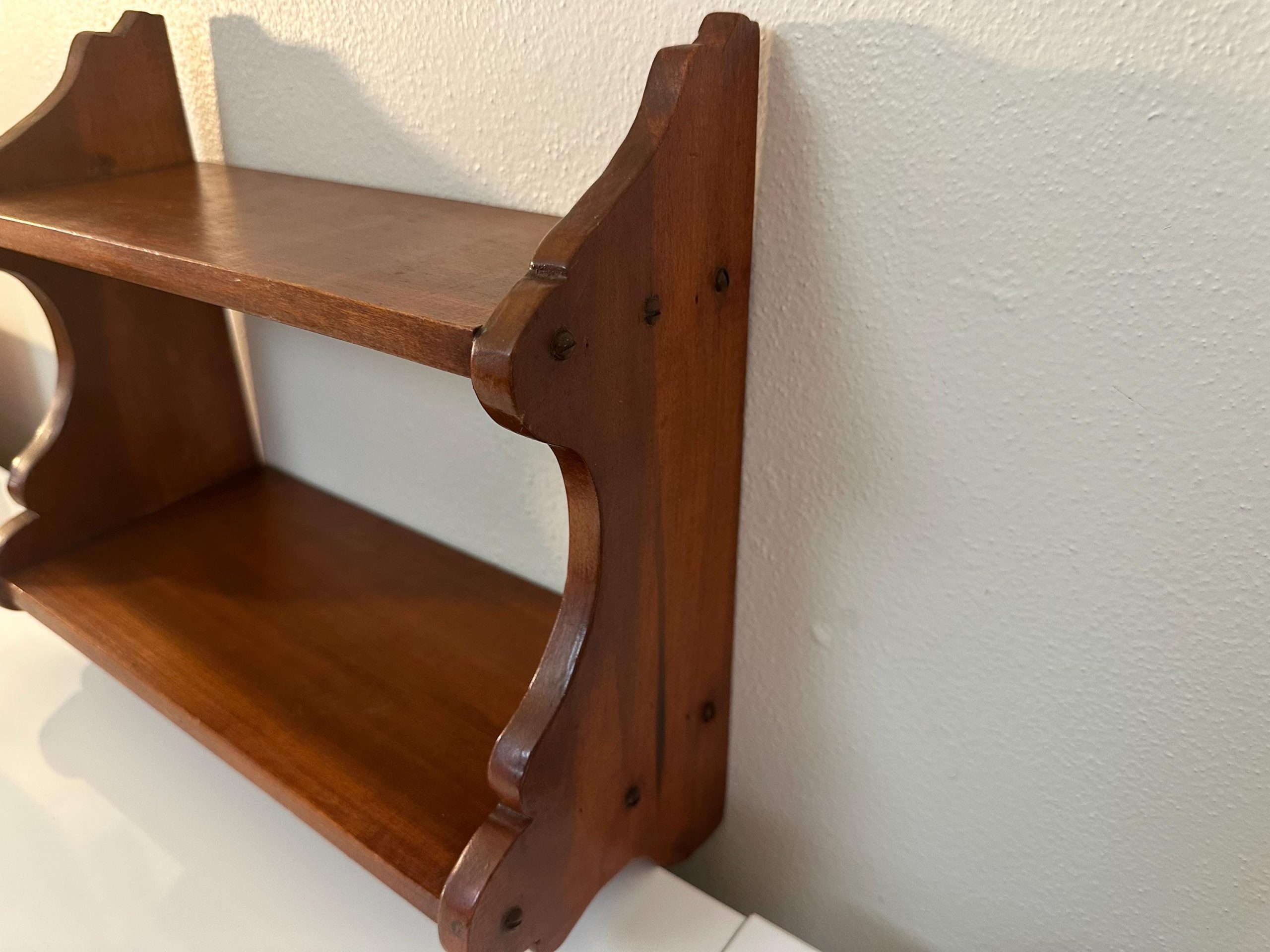 Vintage Hand Made Small Wood Book or Spice Shelf | Cottagecore. Cute curved design at sides. Old screws. See wear & age in pictures and video. Some scratches & scuffs all present.