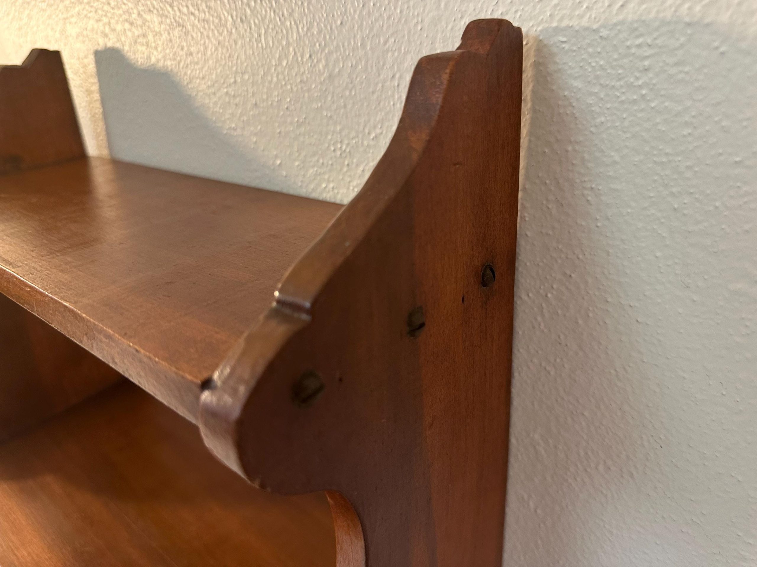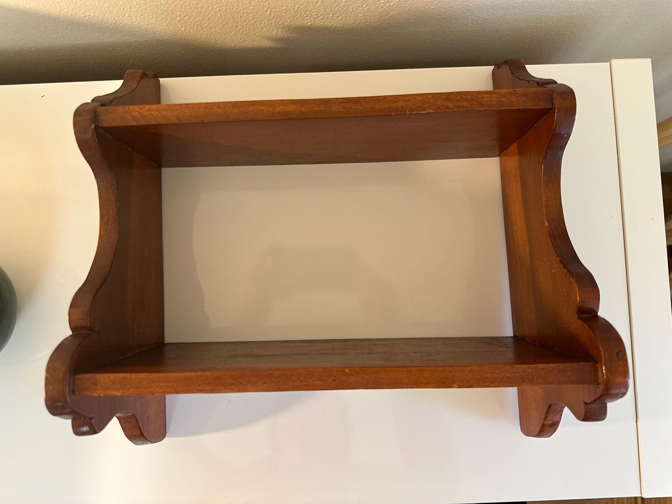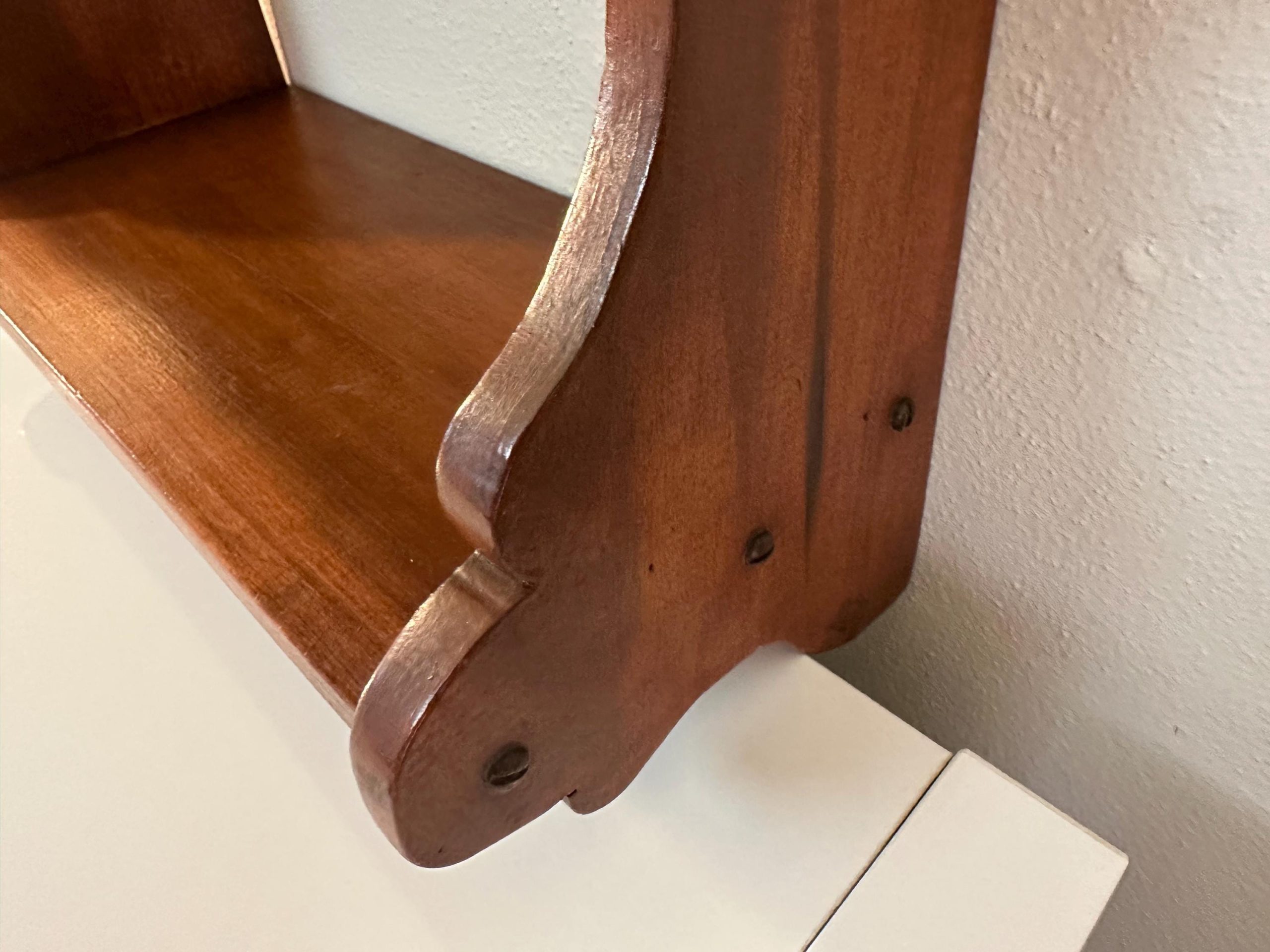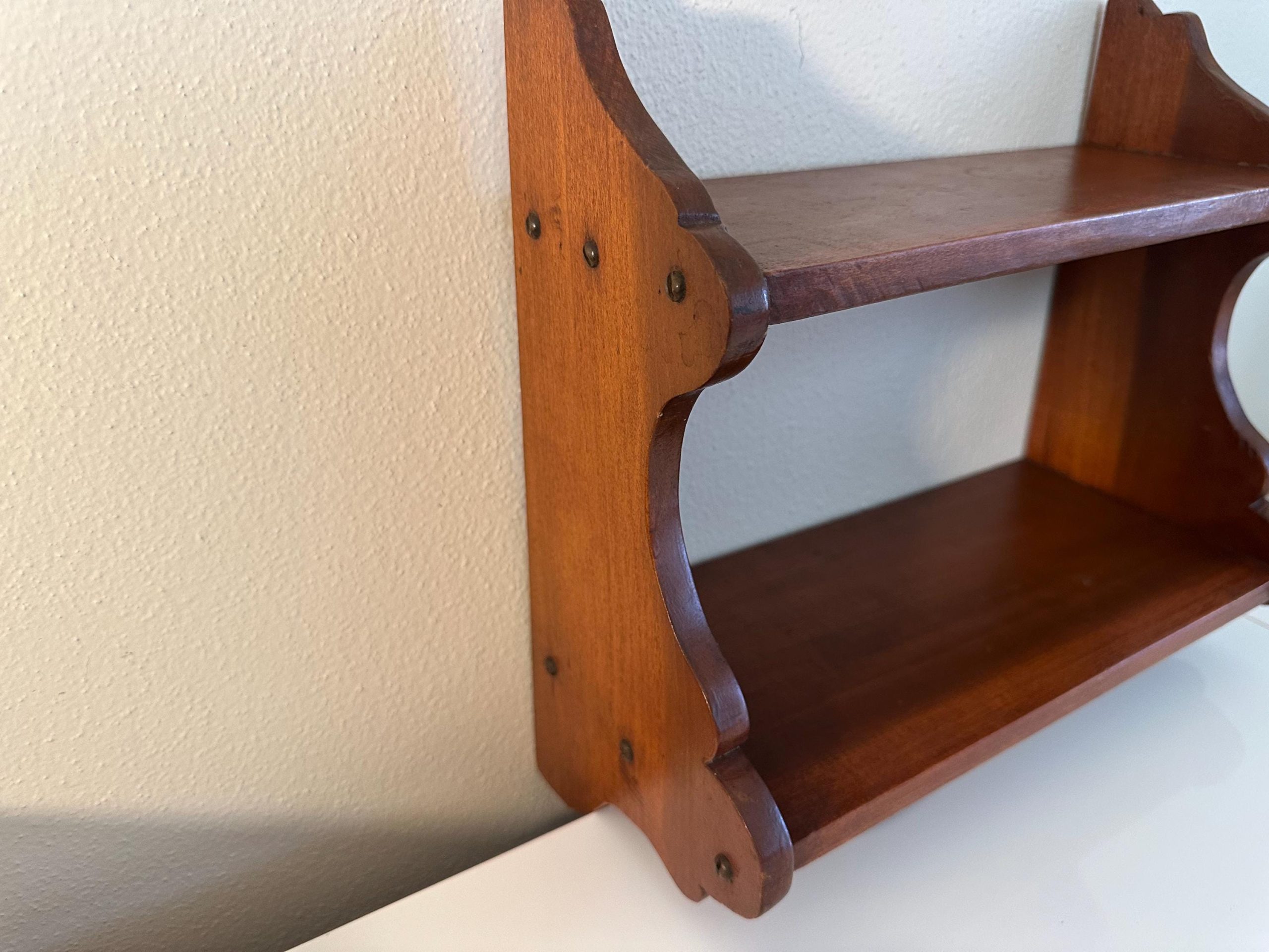 Vintage Hand Made Small Wood Book or Spice Shelf | Cottagecore. Cute curved design at sides. Old screws. See wear & age in pictures and video. Some scratches & scuffs all present.