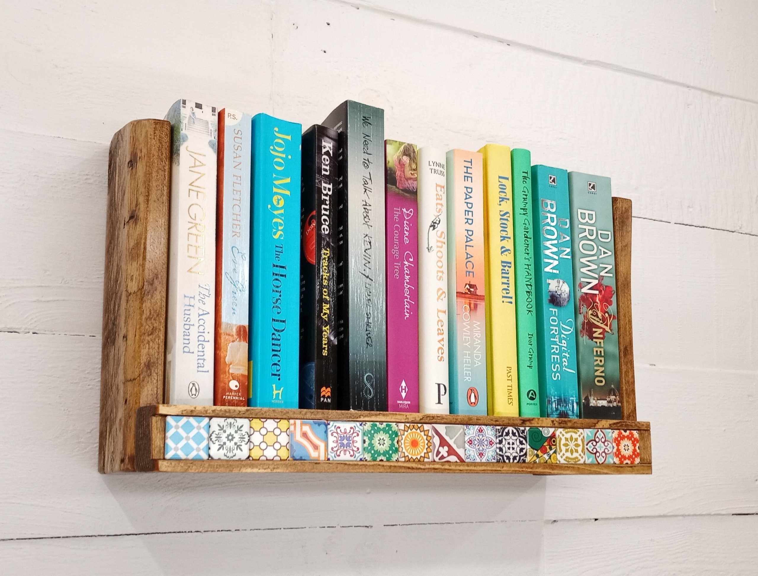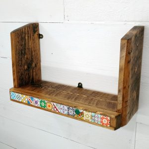 – Each shelf is unique, with natural wood grain and tile variations