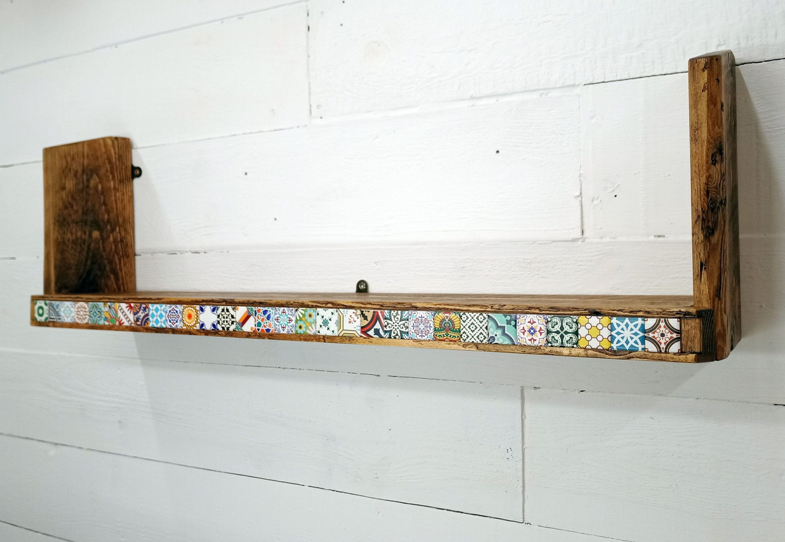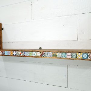 This handcrafted wall shelf blends artisan tilework with sustainable materials, creating a stunning focal point for any room.
