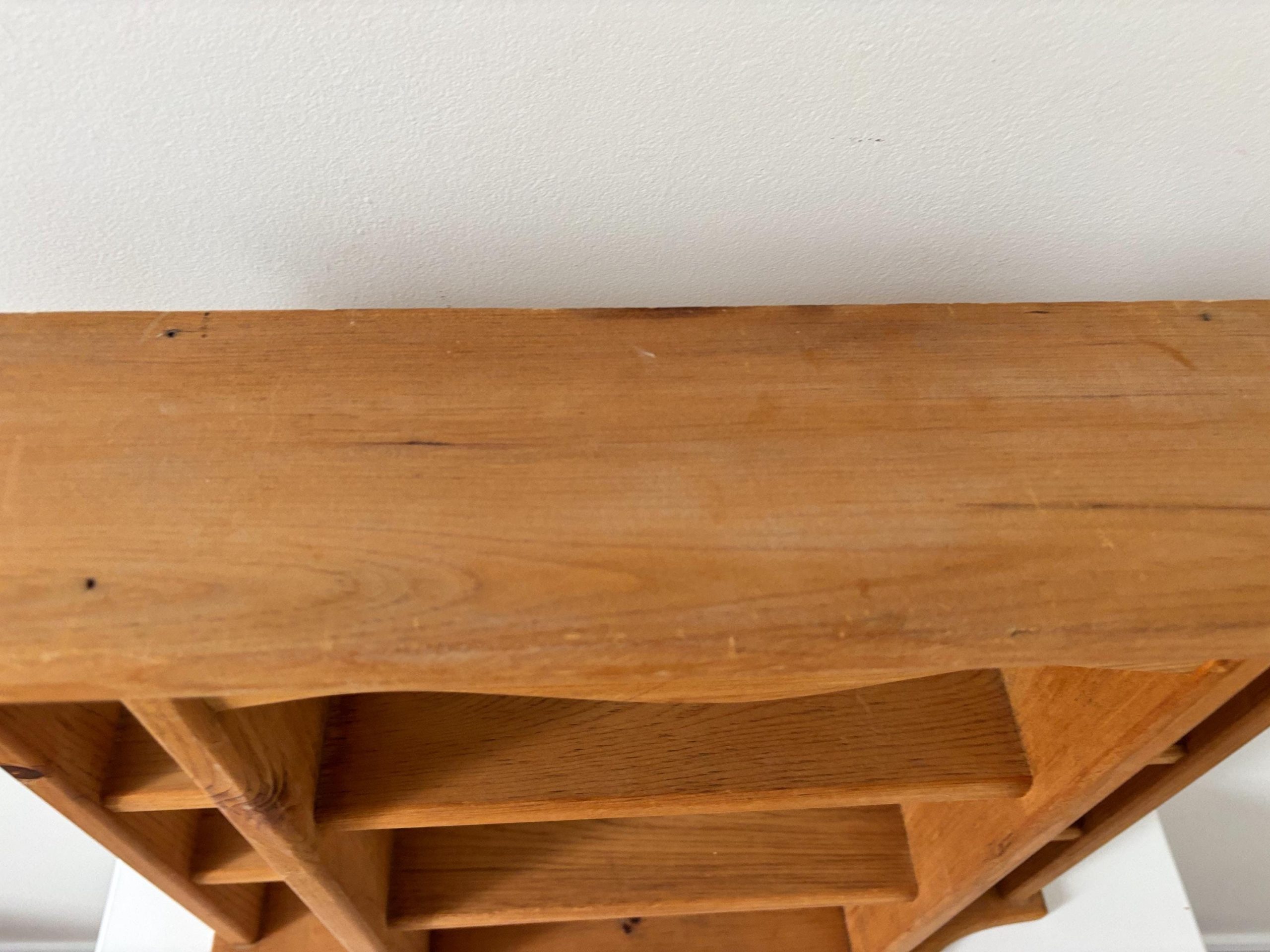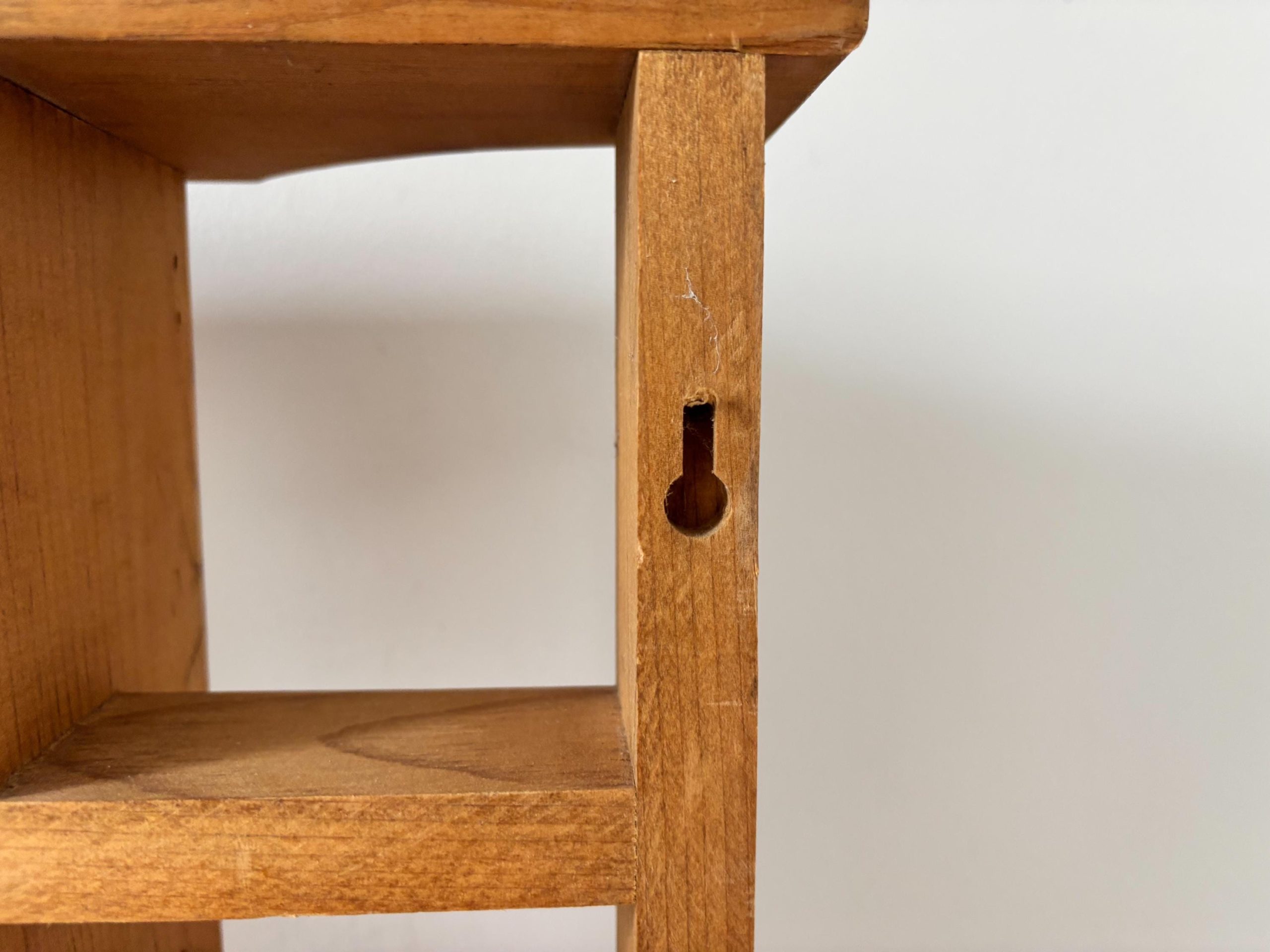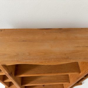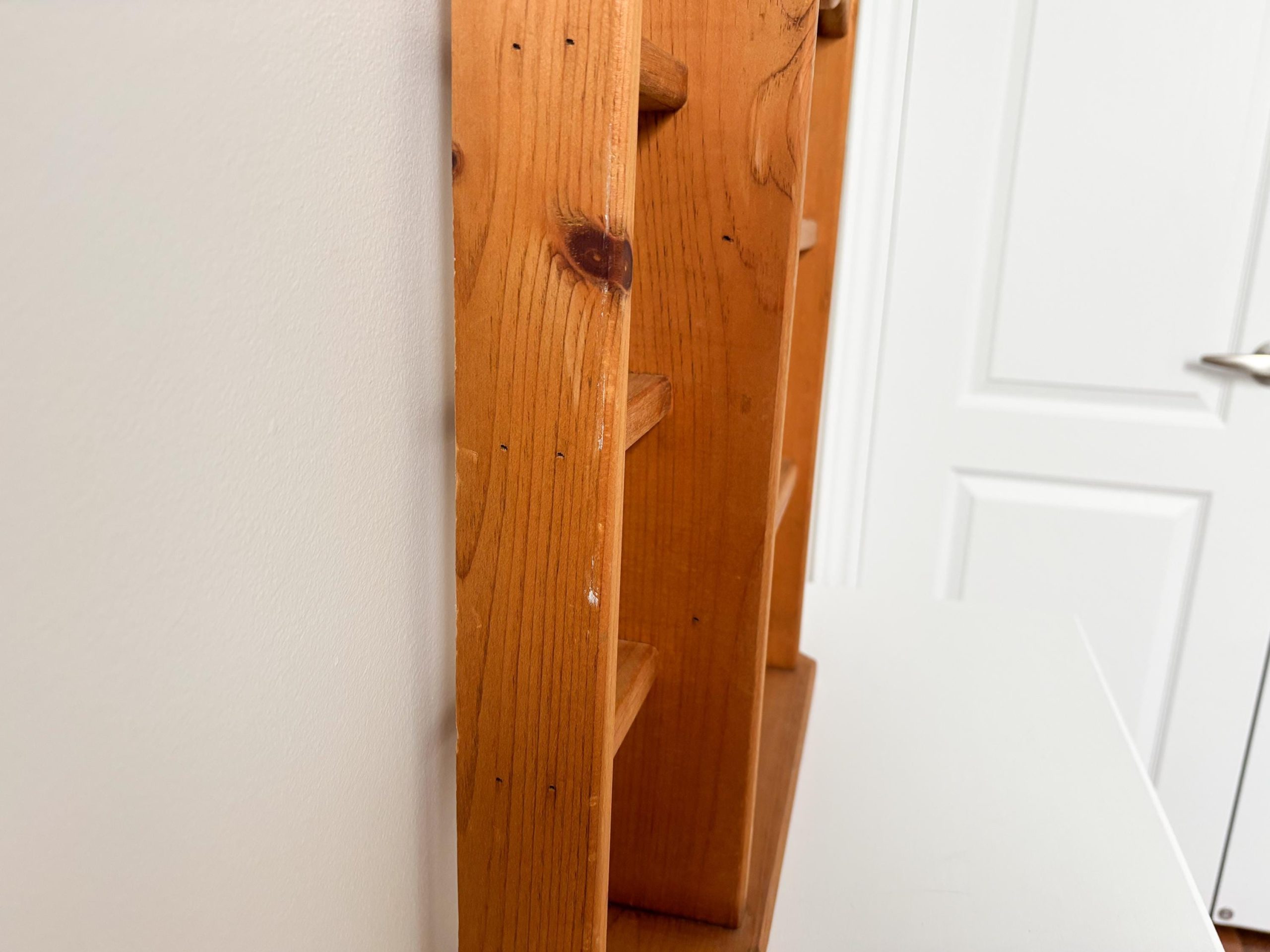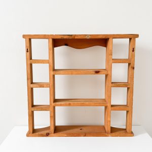 Showcase your favorite small items with this charming vintage floating shelf, crafted from solid 0.75” natural wood. The piece features three vertical rows of shelves, offering the perfect display space for trinkets, spices, essential oils, collectibles, or small bathroom and kitchen items.