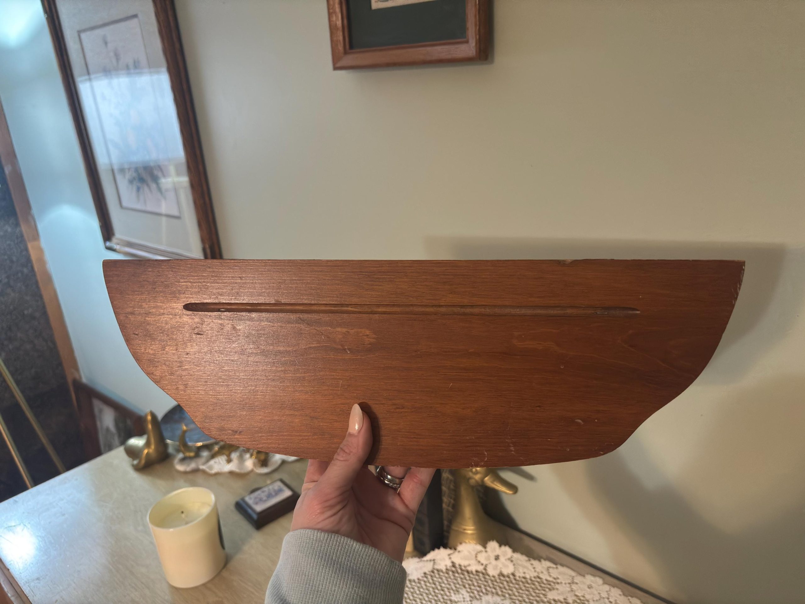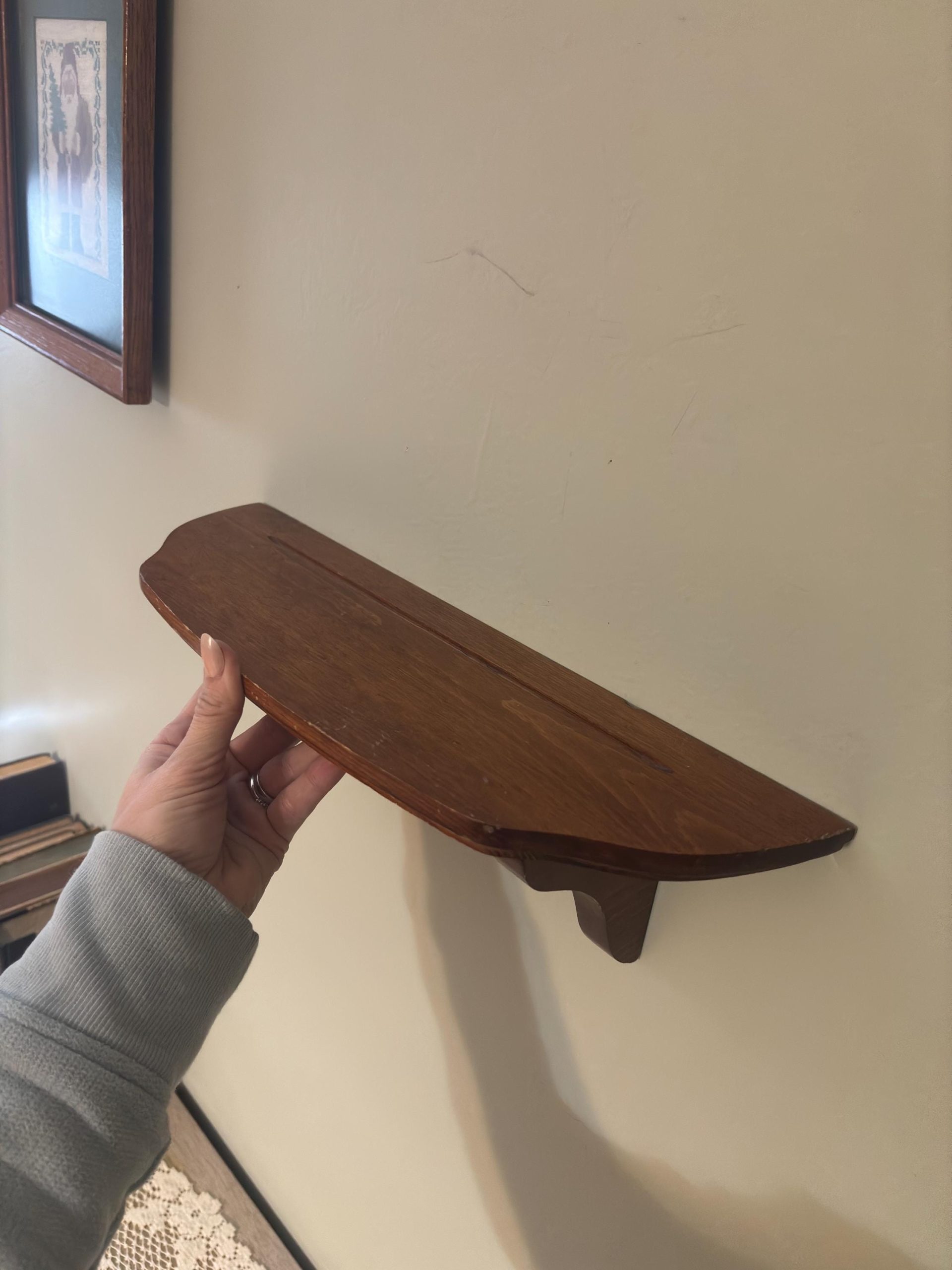 Vintage Small Wooden Wall Shelf – Rustic Trinket Display – Mini Farmhouse Wall Shelf- nursery shelf