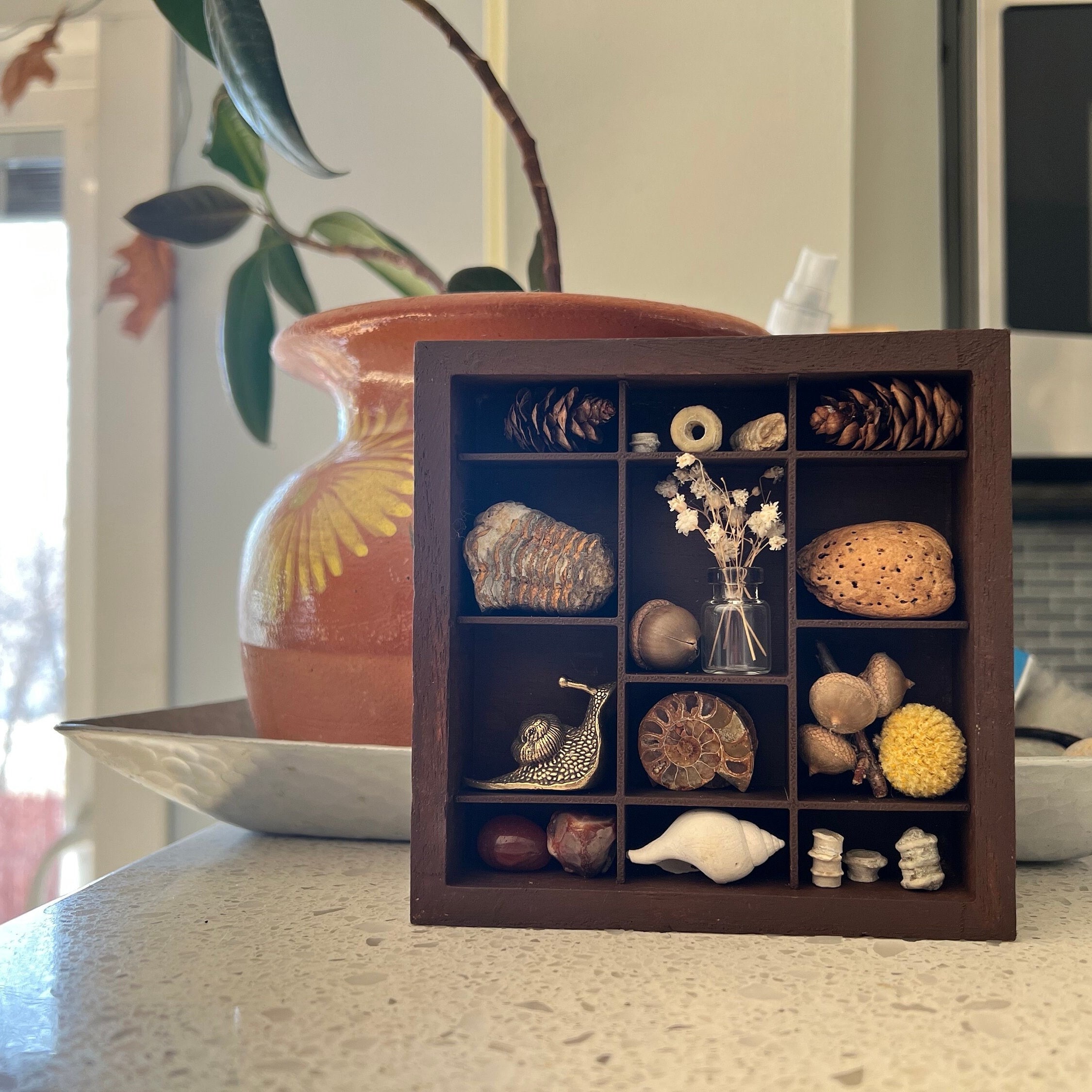 Handmade Mini Wooden Printer’s Tray: Crystal & Collectibles Shelf