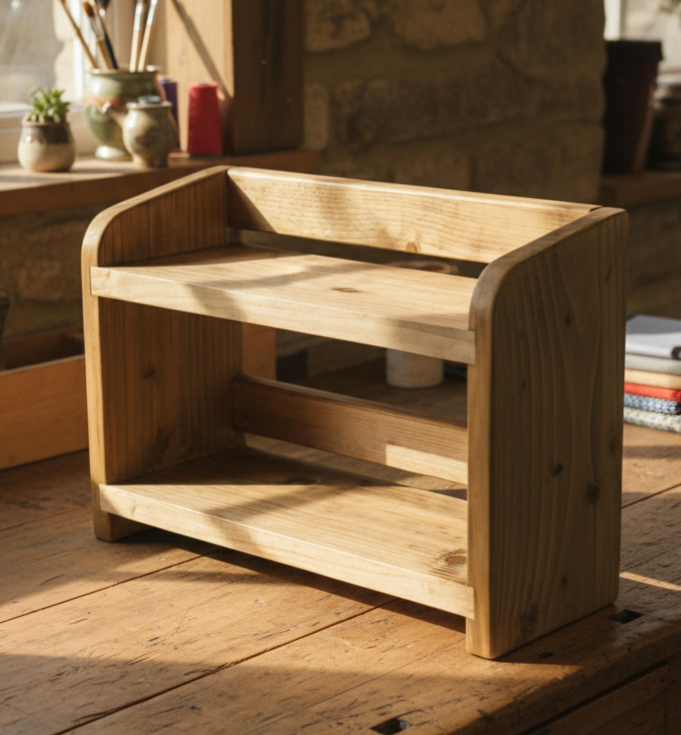 2-Tier Mini Rustic Organizer/Display Stand. Handmade from Thick Solid High Quality Wood.