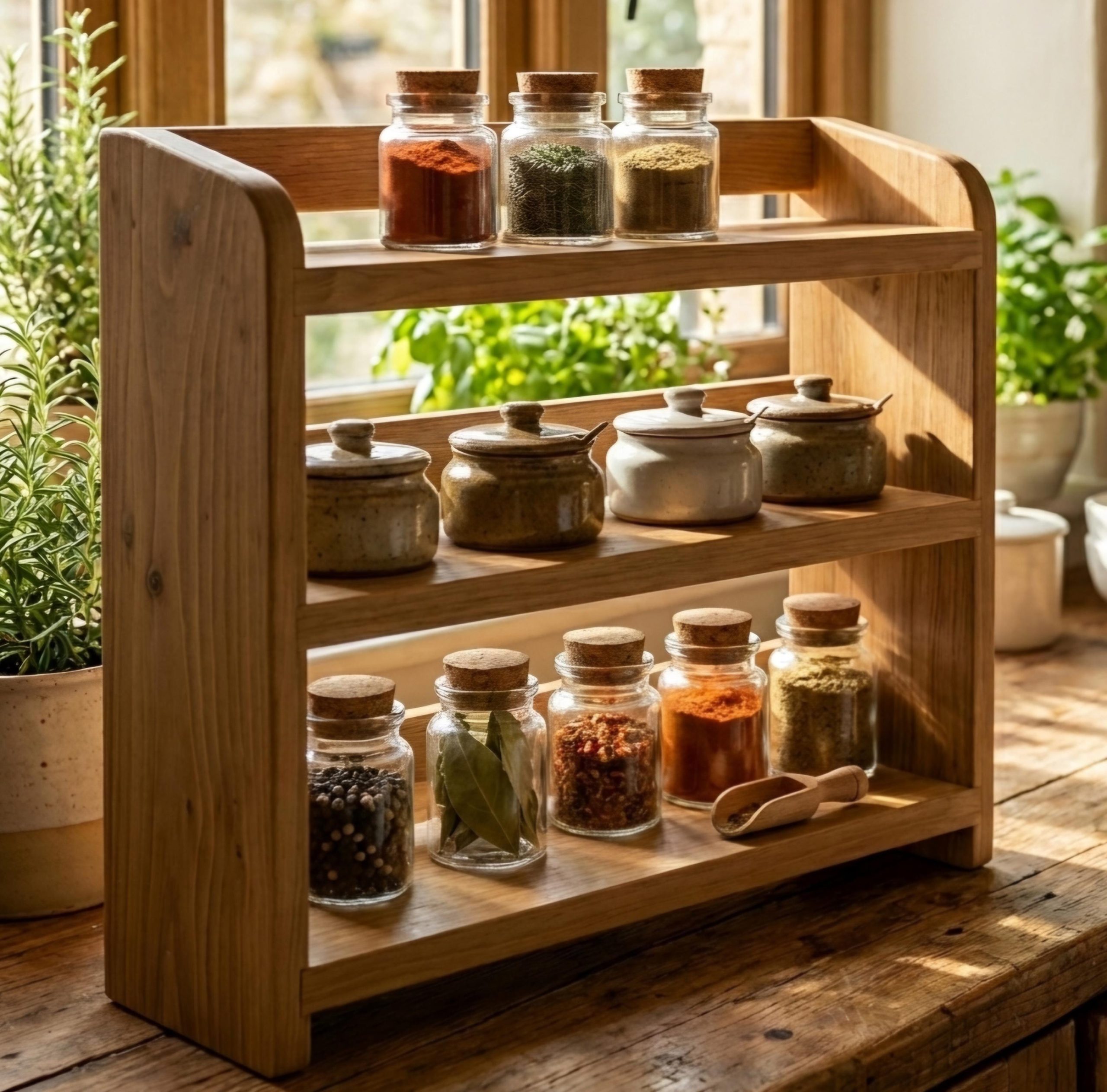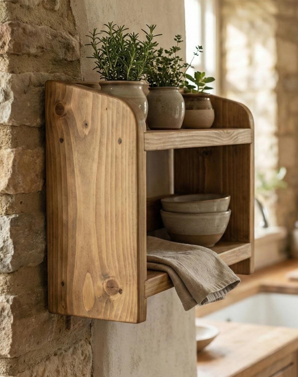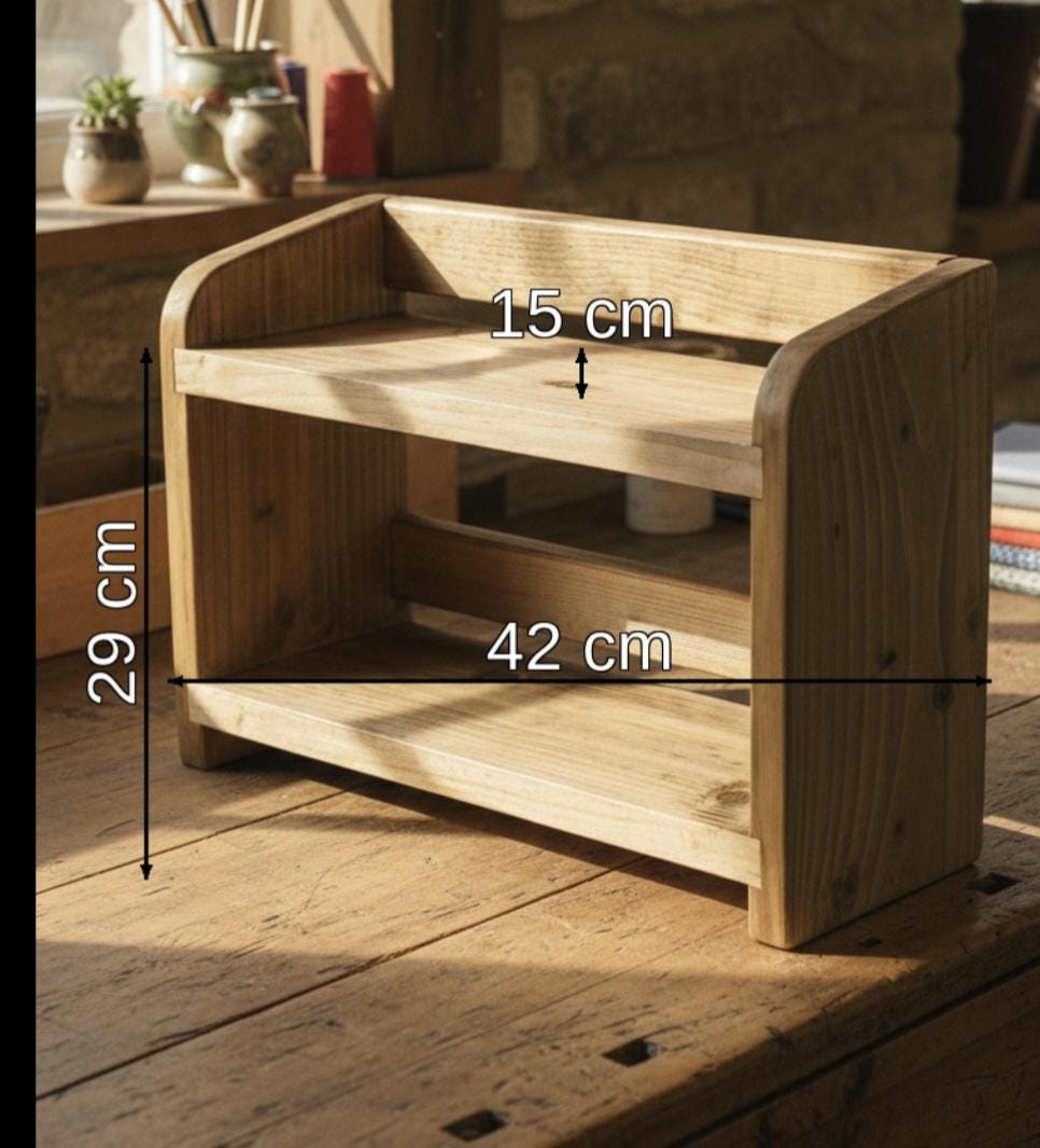 Wooden Kitchen Countertop Shelf: Space-Saving Organiser. Genuine Hand Crafted Artisan.